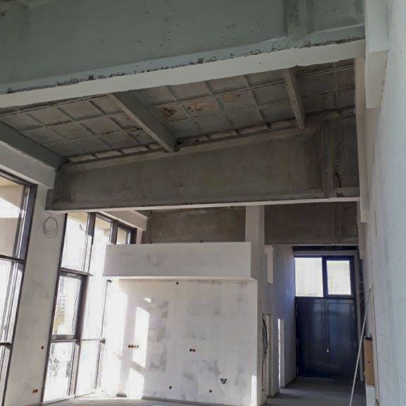 So haben wir den mächtigen Stahlglas-Kubus innenliegend in drei Etagen aufgeteilt. Mit unserer Schlosserei sind wir ins neu gewonnene Erdgeschoss gezogen, und haben im Fortgang im 1. und 2. Obergeschoss sieben großzügige Studios geschaffen.