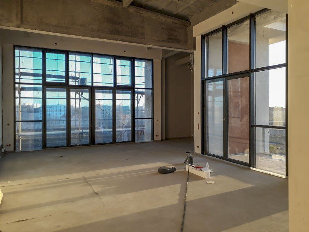 Heizhaus-Studio 2.1 Innenansicht verglaste Westfassade -