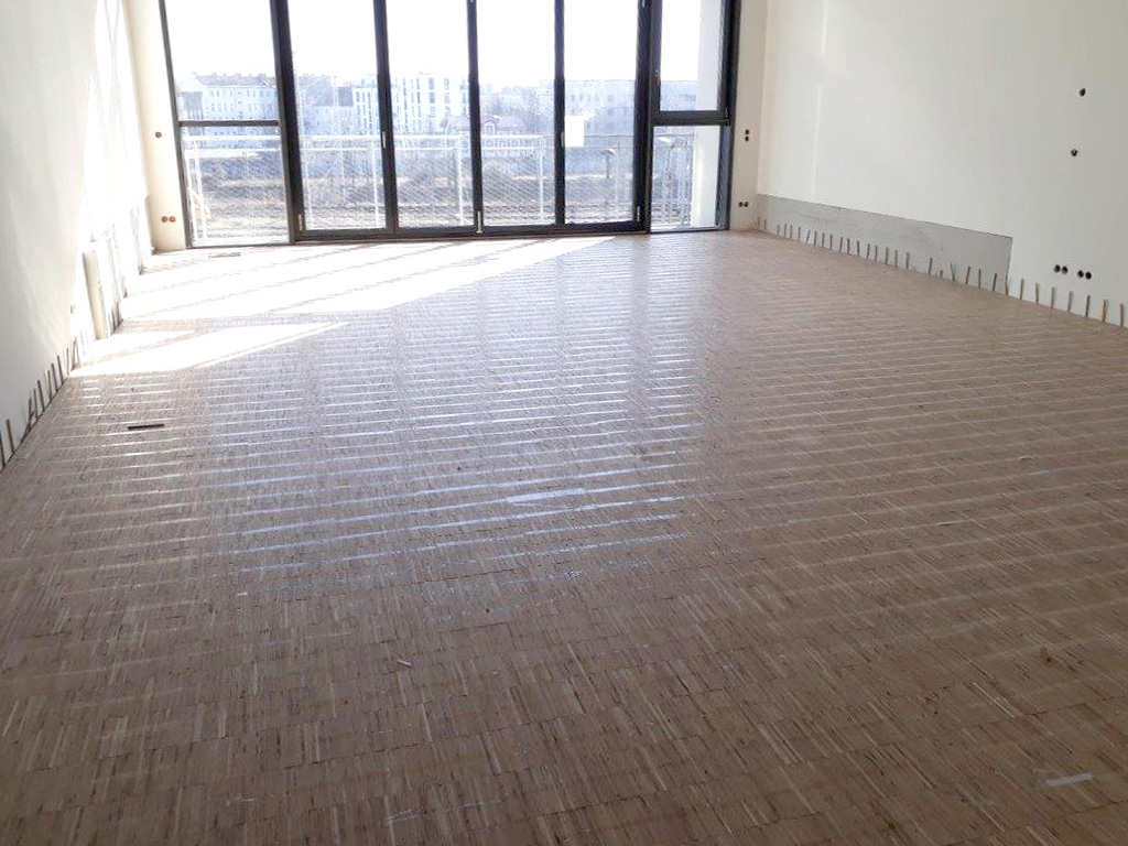 Vollflächige Sonnenschutz-Raffstores sorgen bei Bedarf für Lichtregulierung. Die seitlichen Studio-Trennwände sind bauhandwerklich massiv gemauert und verputzt. Beheizt wird alles über eine Fußbodenheizung, der Fußbodenbelag ist verlegtes Eichenparkett.
