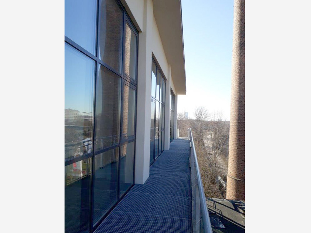 Heizhaus-Studio 2.3 Blick auf Eingang über Laubengang, Nordseite -